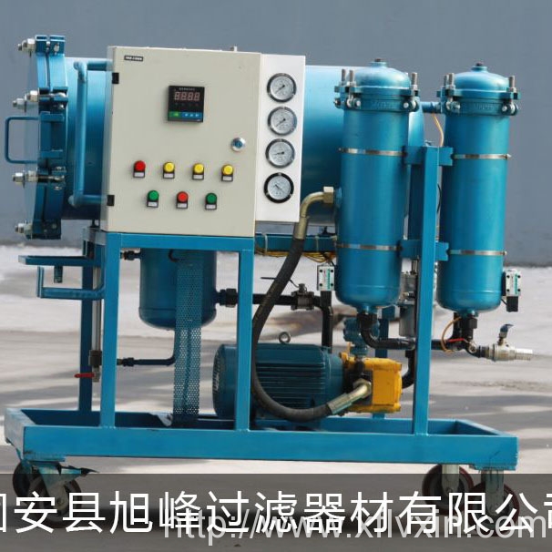 油液首先从初过滤器滤除油液中的颗粒后,进入聚结分离器中,油液通过过滤、聚结、沉降分离四个过程,实现脱出水分的功能,*后输出净化油。沉降在积水槽中的水通过积水槽上的放水阀排除。同时可根据油质的情况选择油液直接通过过滤器滤除油液中的颗粒污染物,输出净化油。